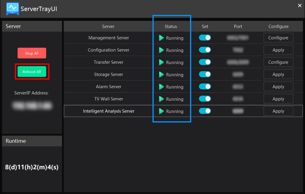 Once the app opens, check the Status to see if all the servers are running. Even if they are, press the Reboot All button and wait for the status to refresh to Running.