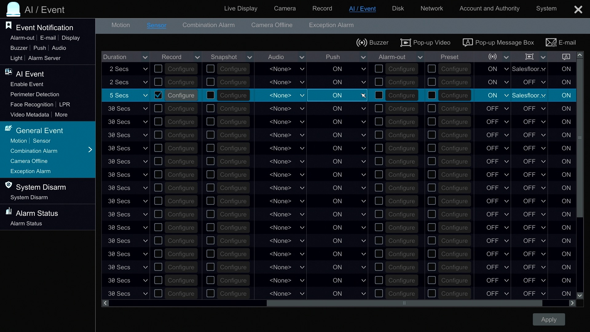 Alarm Sensor Setup on DVR / NVR