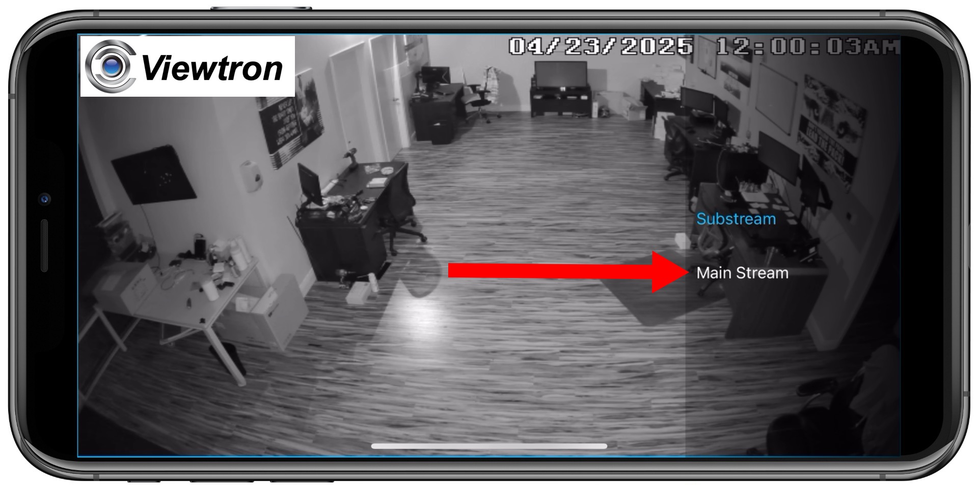 - Select Stream: Switch between Main Stream and Substream recordings. Main Stream is the high definition video.